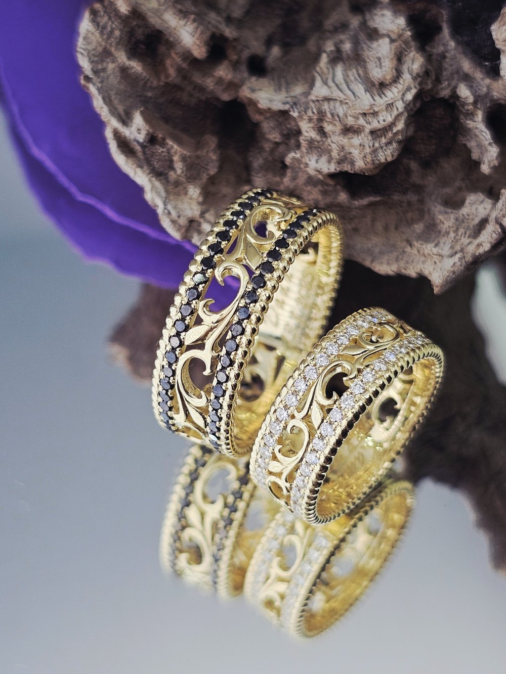 V našej galérii nájdete bohatý výber nádherných, ručne vyrábaných svadobných obrúčok, ktoré predstavujú ukážku nášho remesla.